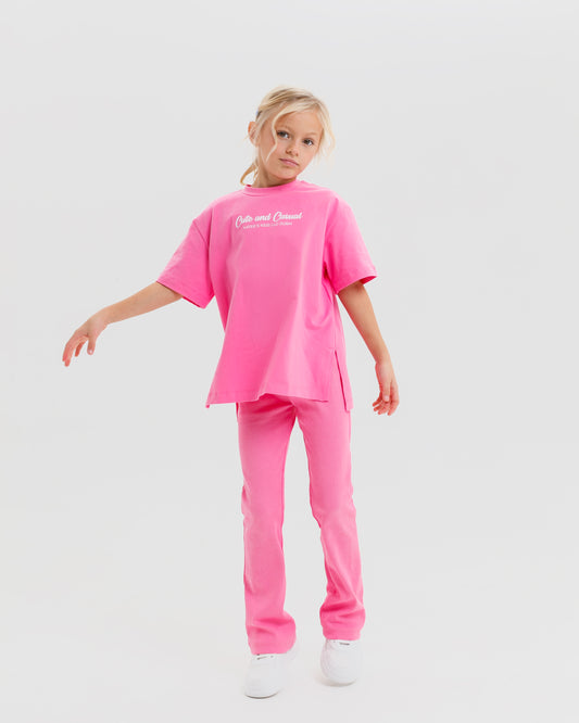 Girls’ Ribbed Peony Pink Flared Leggings – (Made in UAE)